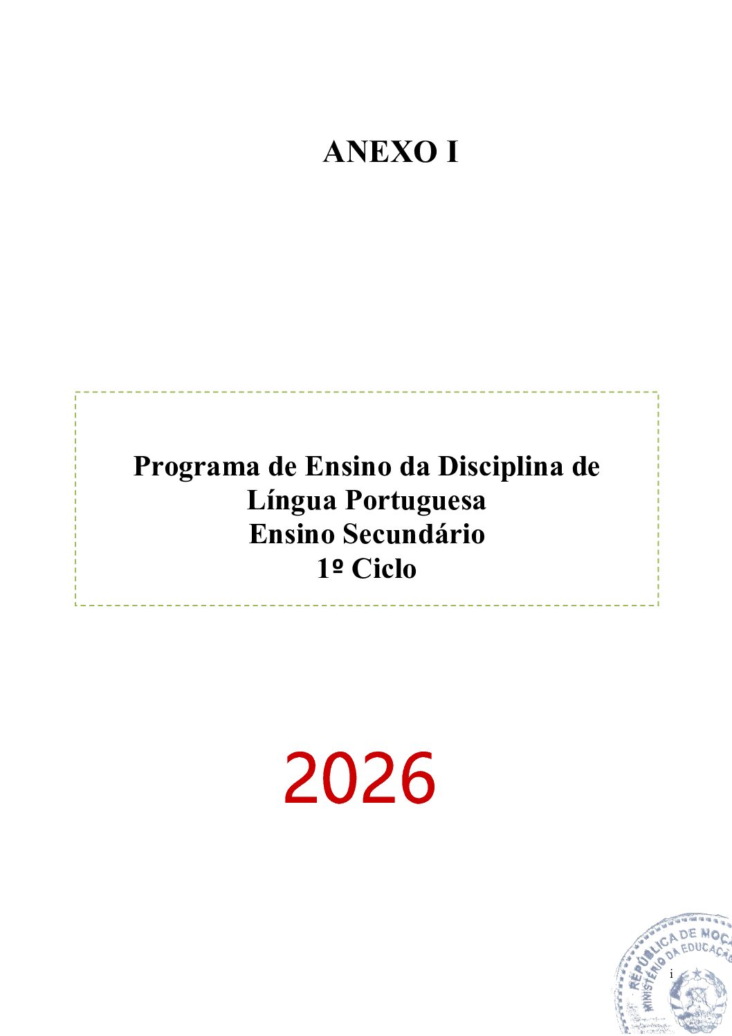 O Programa de Ensino da disciplina de Língua Portuguesa do 1º Ciclo do Ensino Secundário, presente no Anexo I, é um documento oficial elaborado pelo Ministério da Educação e Cultura de Moçambique.